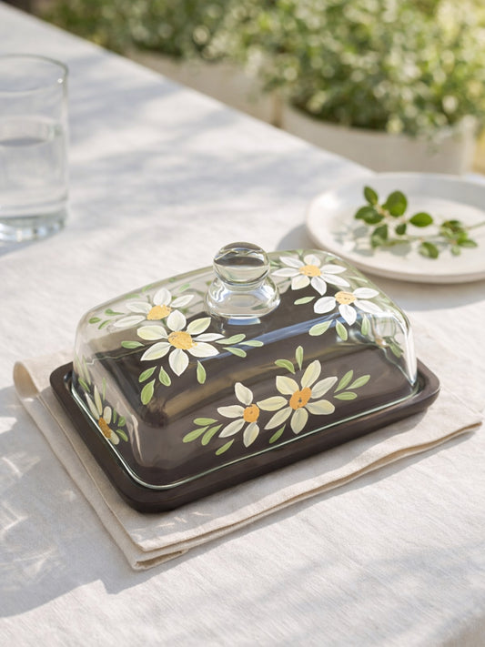 Hand-painted Glass Butter Dish - Anastasia
